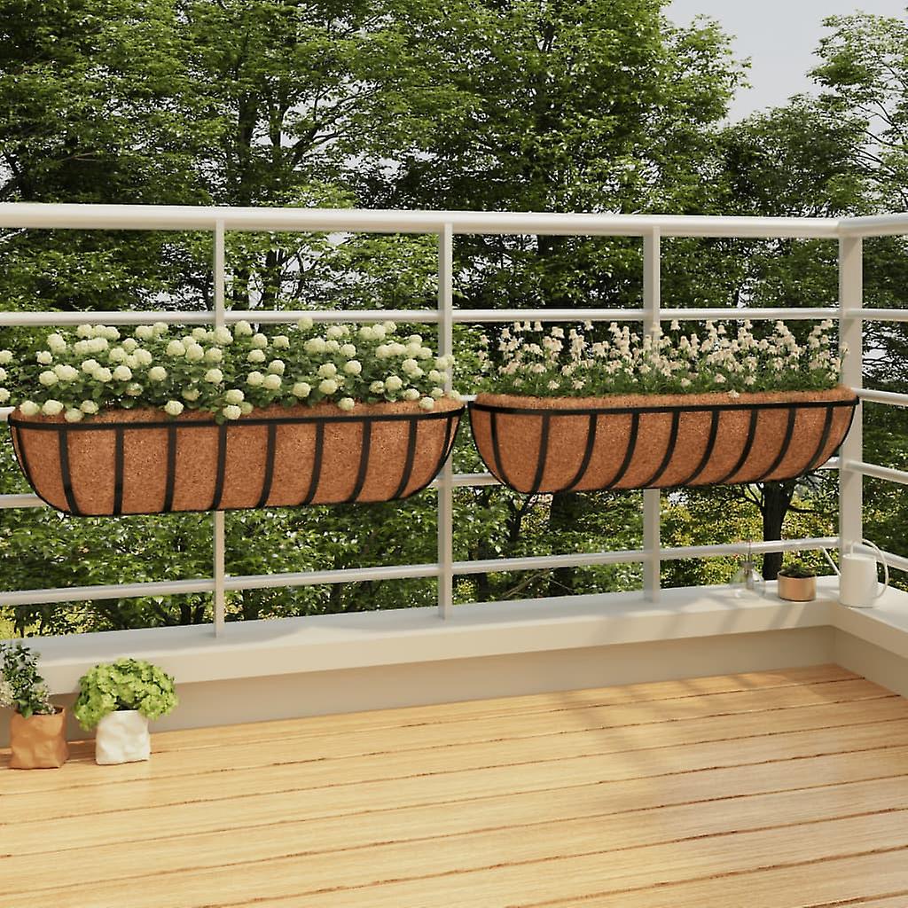Wand-Pflanzkörbe 2 Stk. Kokoseinlage Schwarz 91x20x23 cm Stahl
