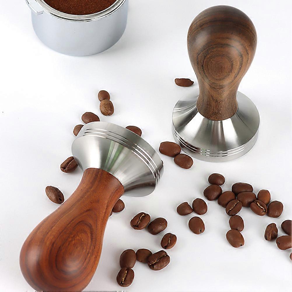 Powder Hammer Coffee Tamper 51/53/58mm Wooden Ground Coffee Hammer 304 Flat Base Stainless Steel Coffee Accessories