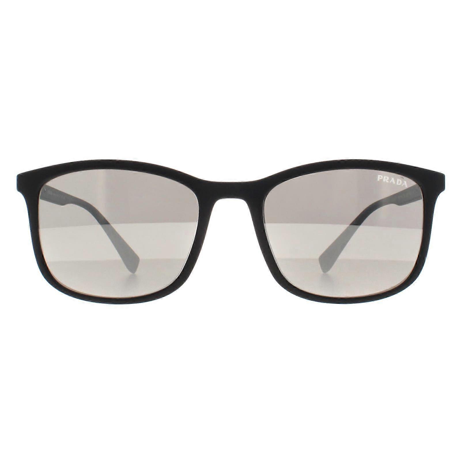 Prada Sport Sunglasses PS01TS DG02B0 Black Rubber Light Grey Silver Mirror