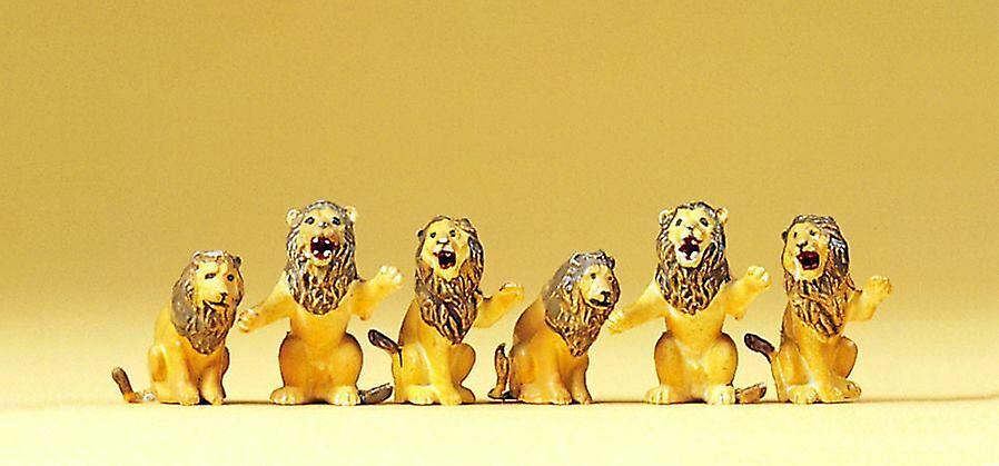 Preiser PR20381 Circus Lions Seated (6) Figure Set HO 1:87 (OO gauge compatible) Plastic Painted Figures [HO] Scale model
