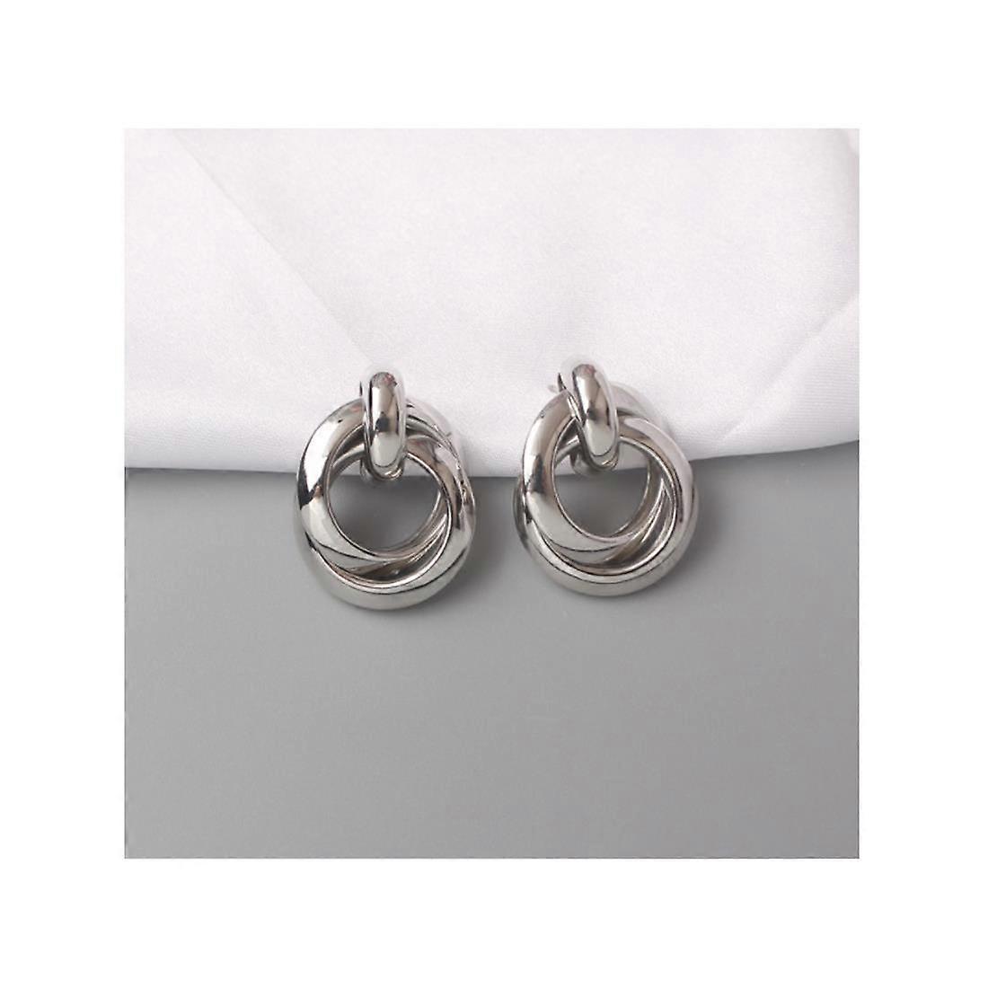 Premium Earring Silver Double Circle Round Jewellery Ear Ring Ladies Teens Women
