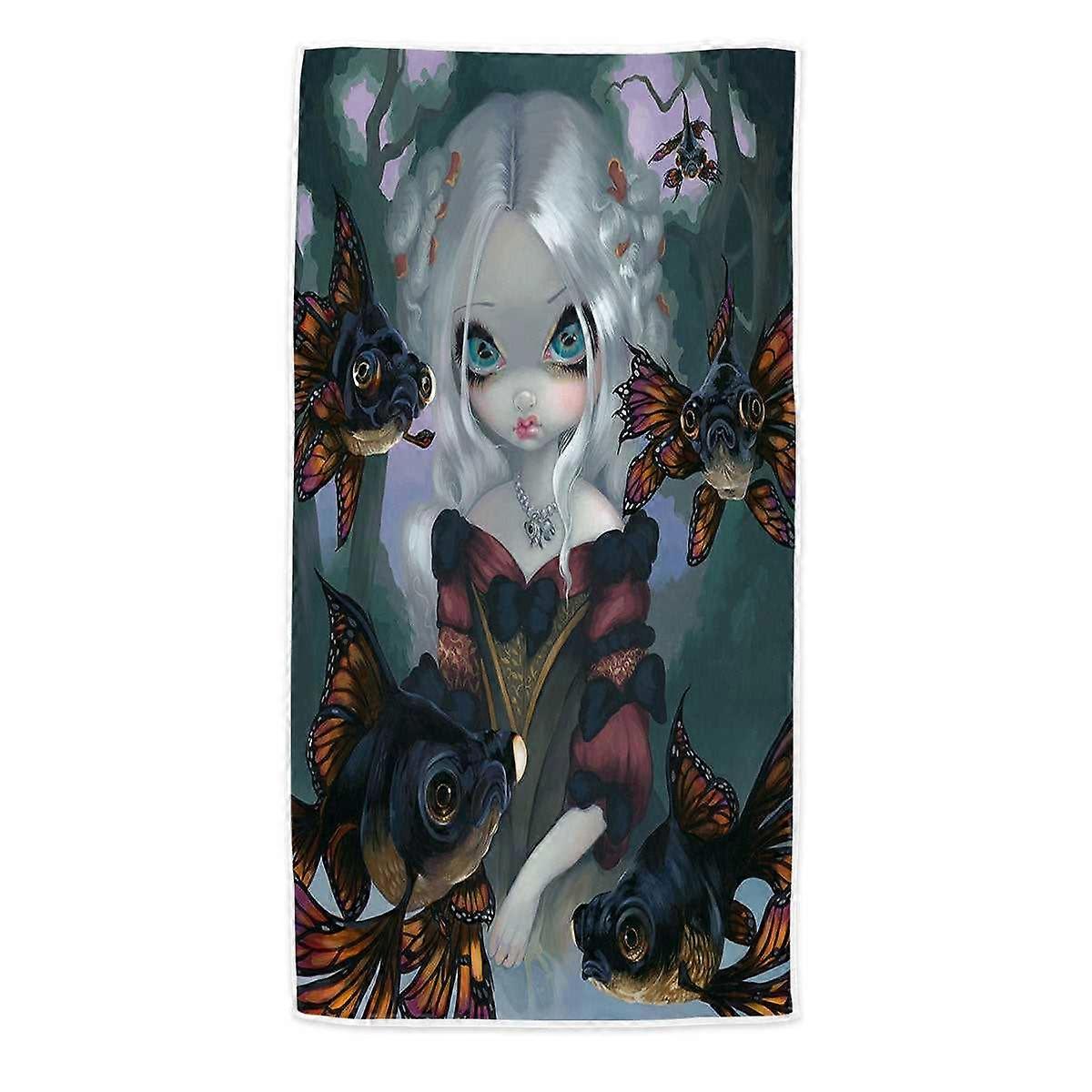 Pretty Girl and the Black Moor Goldfish Butterfly Microfiber Beach Towel