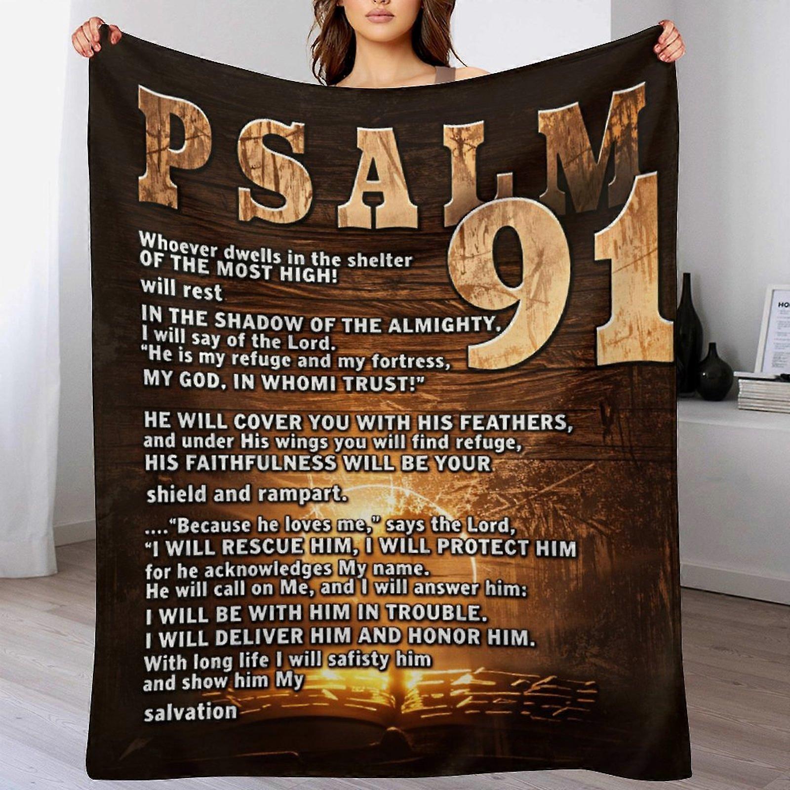 Psalm 91 Bible Verse Print Flannel Blanket - Soft Warm Throw | Spiritual Decor for Christian Homes