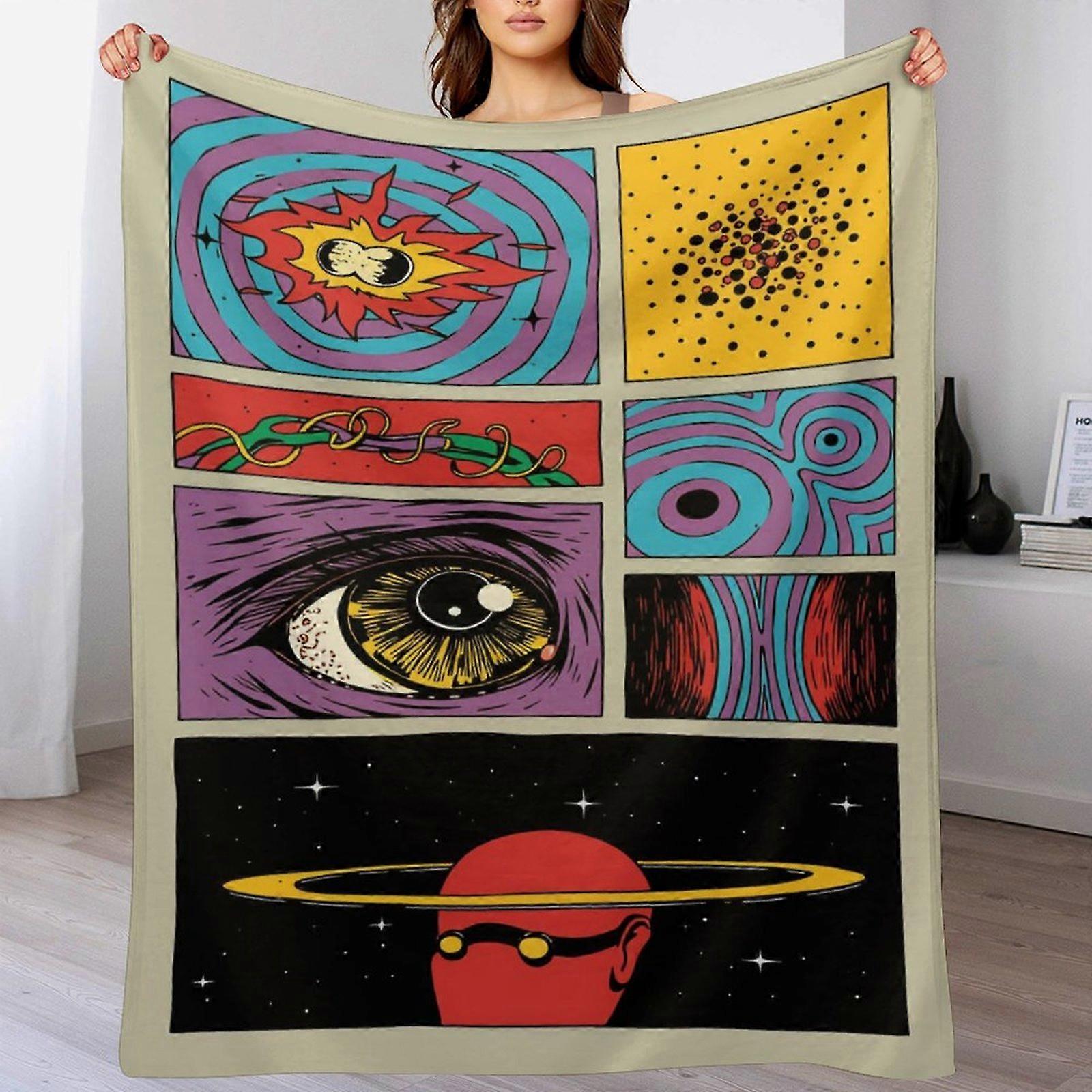Psychedelic Comic Panel Print Flannel Blanket - Soft Warm Throw for Bedroom | Retro Groovy Decor for Trendy Teens