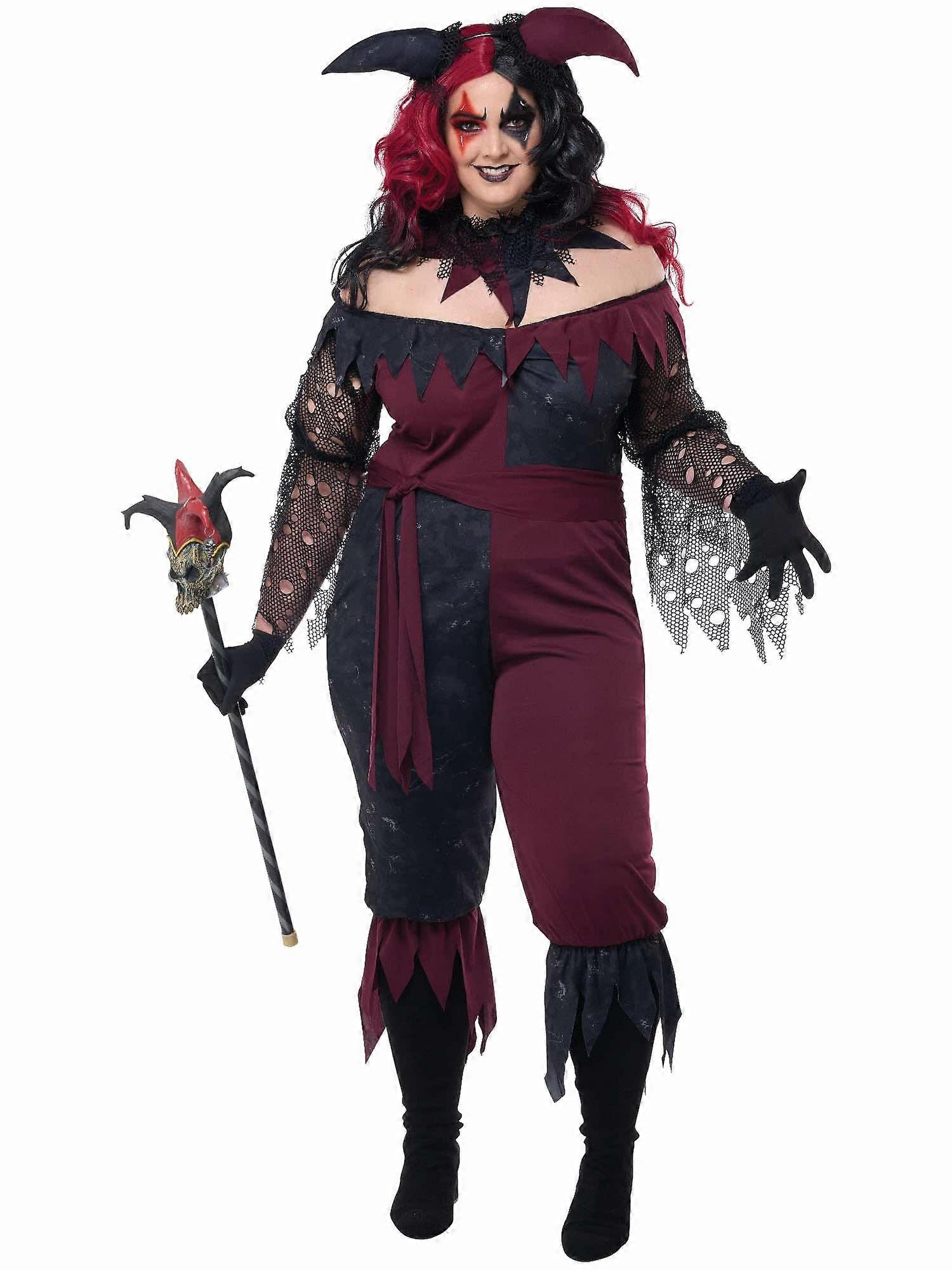 Psycho Jester Evil Horror Clown Halloween Adult Womens Costume Plus