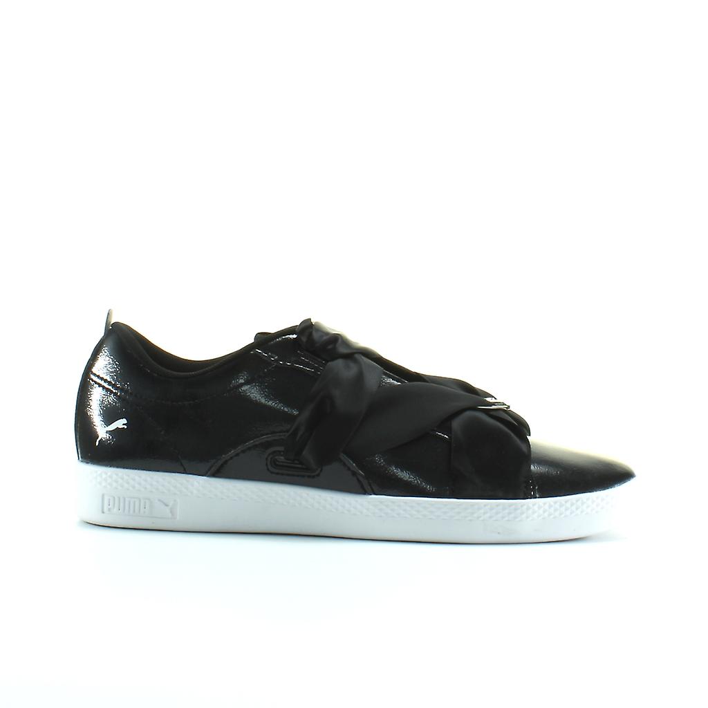 Puma Smash Buckle Black Patent Leather Womens Lace UP Trainers 369638 02
