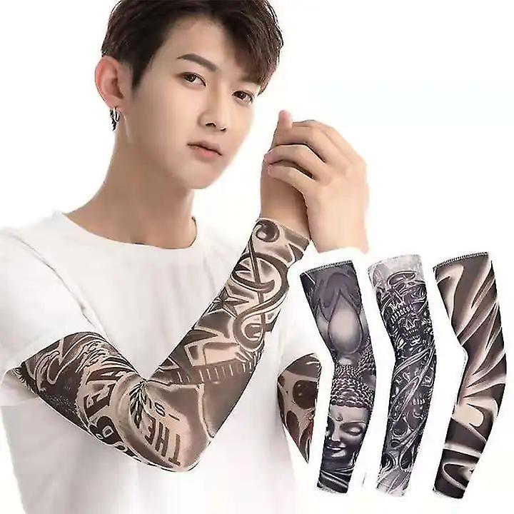 Punk Skalle Tribal Tro Totem UV-skydd ärmar Hip Hop Kroppsdekoration Tillfälliga Helbens- och Armtat