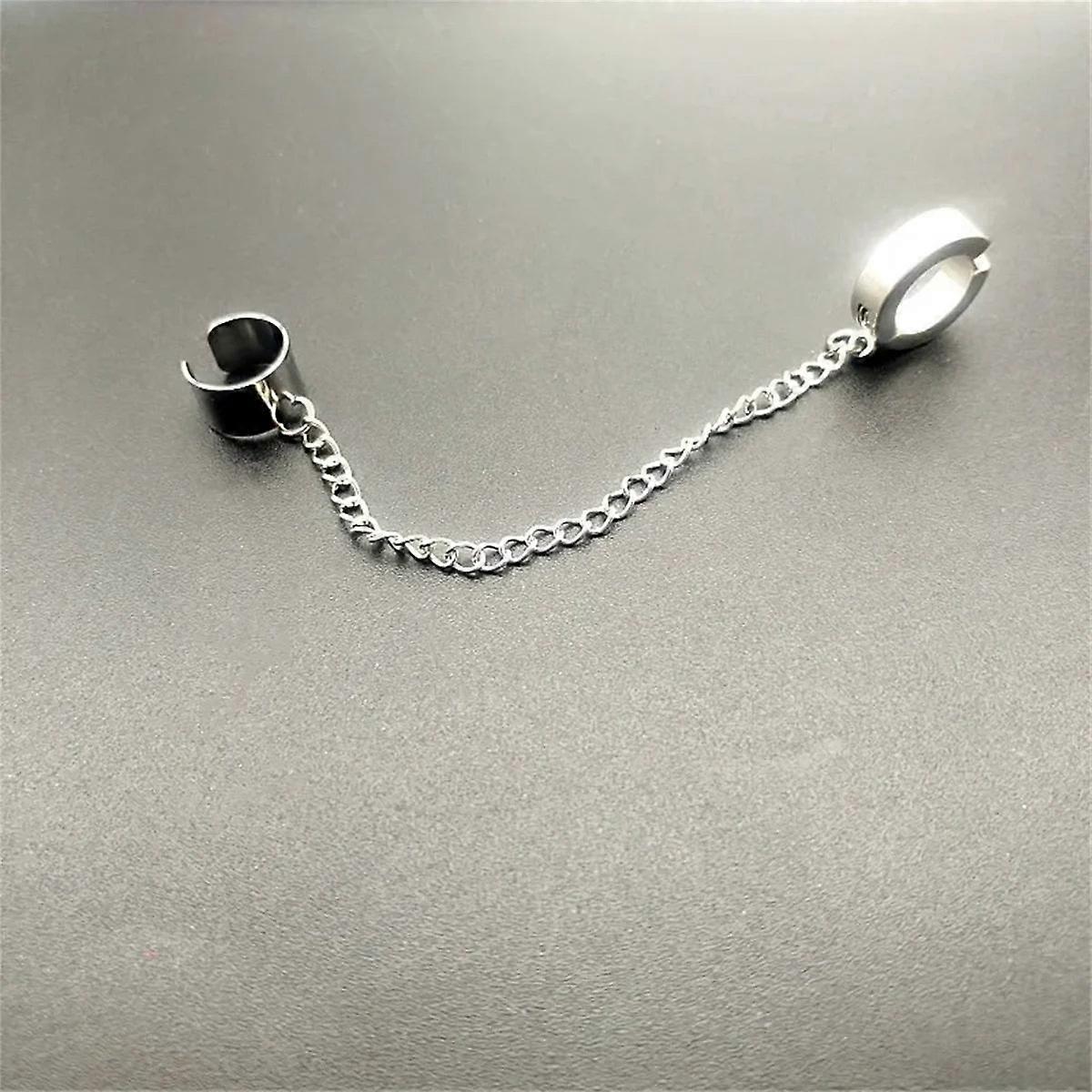 Punk Stainless Steel Non-piercing Ear Clip Earrings & Women, Silver, Painless