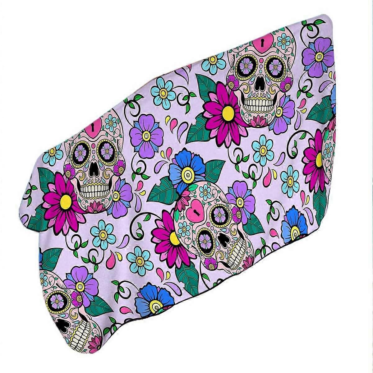 Purplish Sugar Skulls and Flowers Microfiber Beach Towel