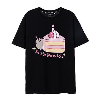 Pusheen Womens Short Sleeved T-Shirt Black Let's Pawty