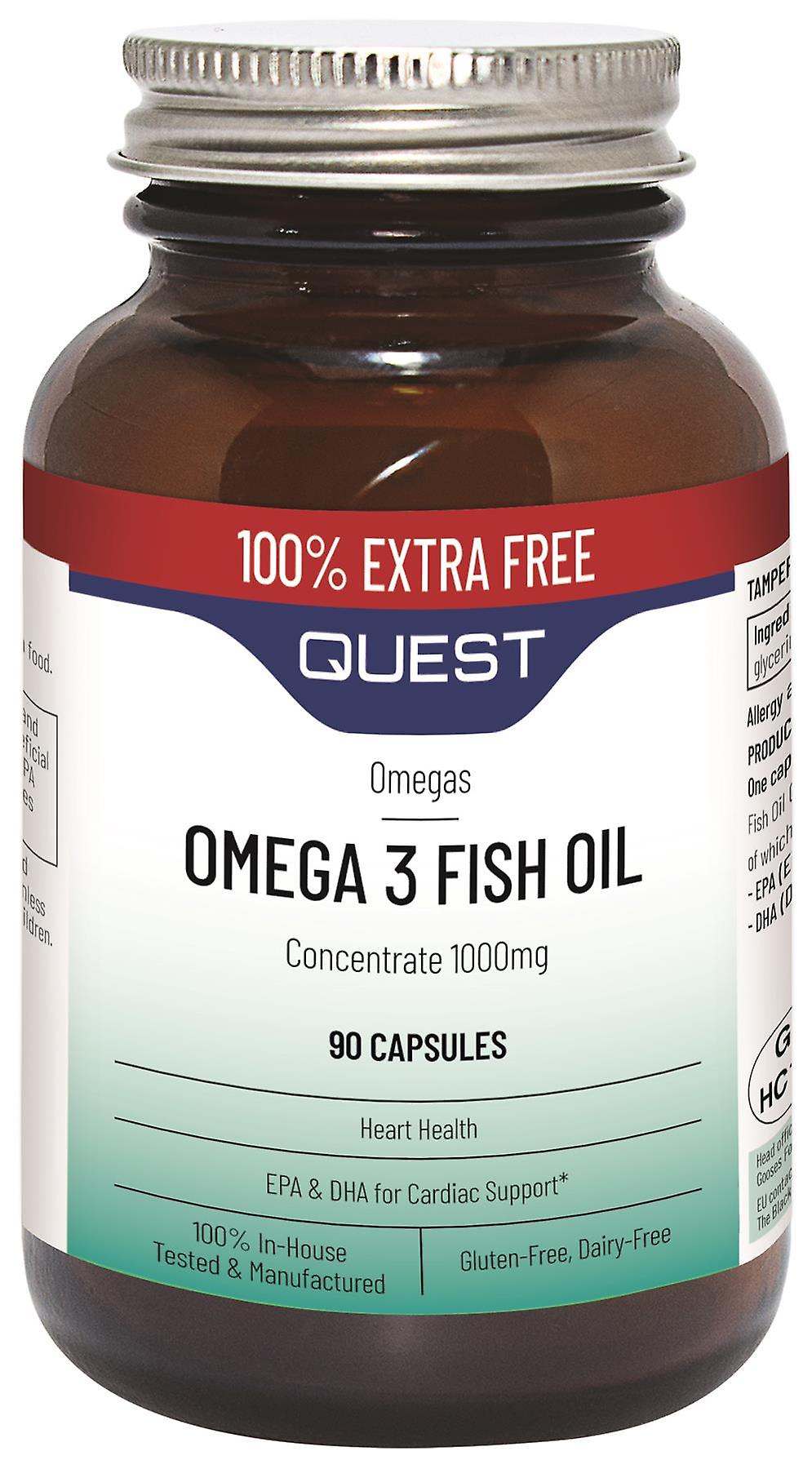 Quest Omega 3 Fish Oil Concentrate - 1000mg -100% Extra Free - 45+45 Capsules