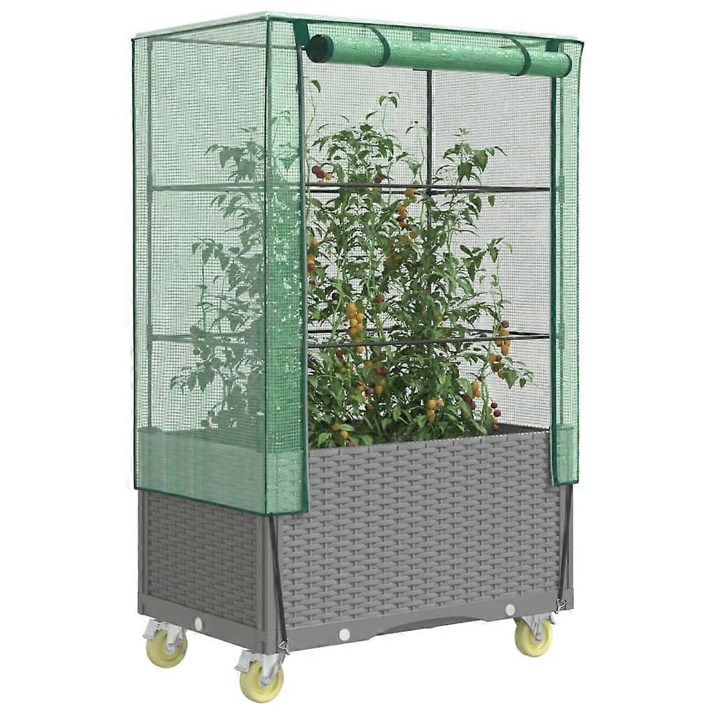 Hochbeet mit Aufsatz und Rollen Rattan-Optik 80x50x182 cm