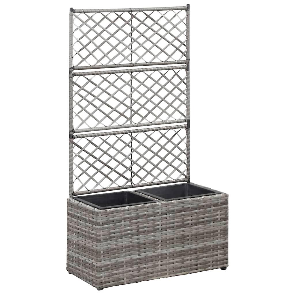 Hochbeet mit Rankgitter 2 Töpfe 58×30×107cm Poly Rattan Grau