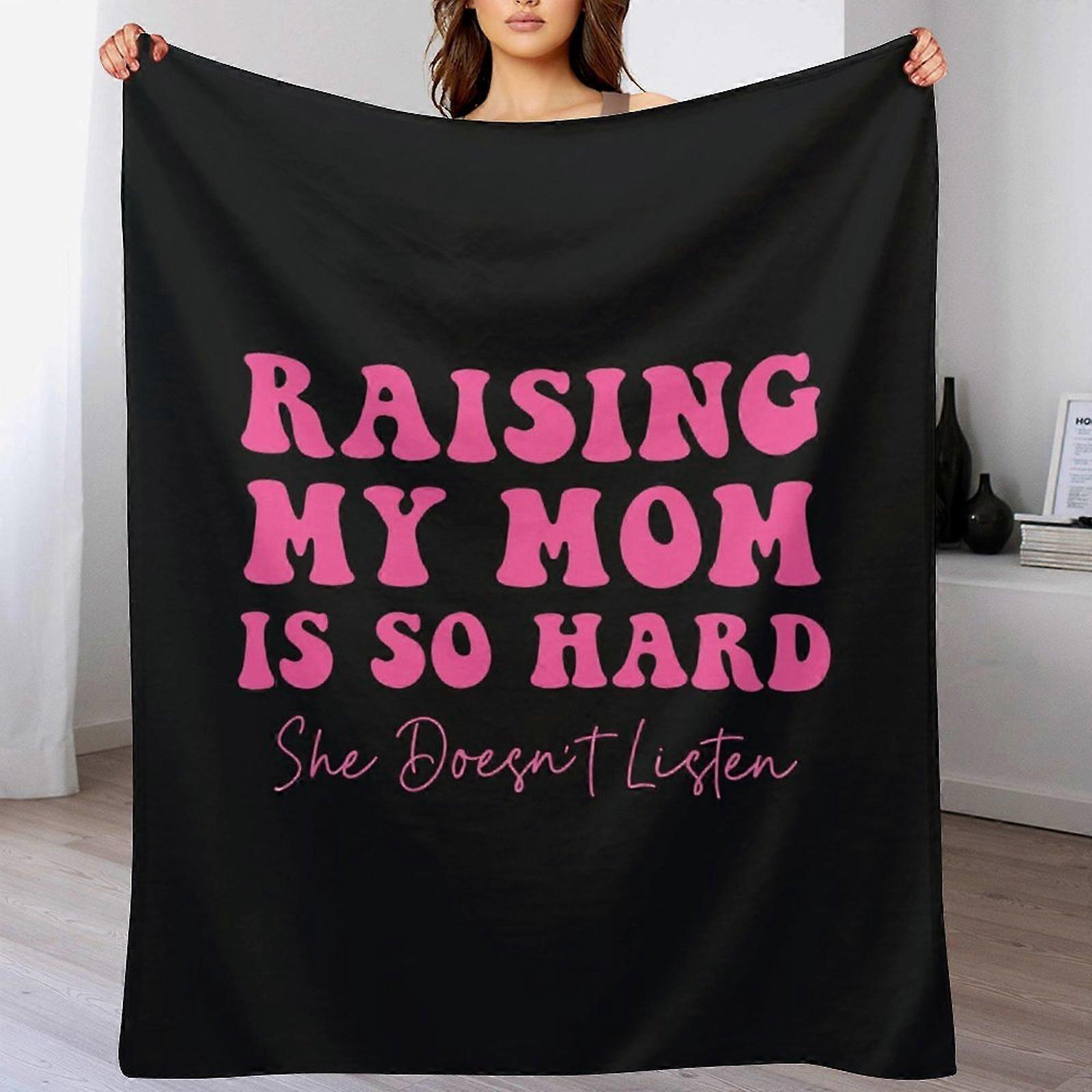 "Raising My Mom Is So Hard" Quote Print Flannel Blanket - Soft Warm Throw | Funny Gift for Daughters & Sons