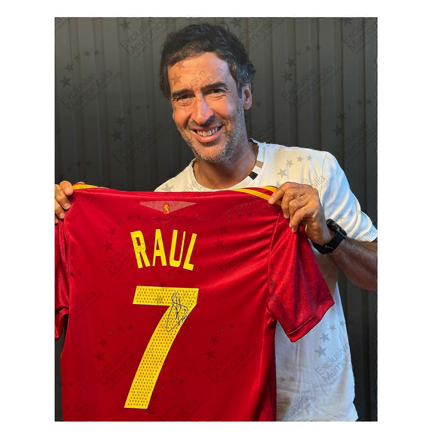 Raul & David Villa Signed Spain 2020 Home Football Shirts. Dual Frame
