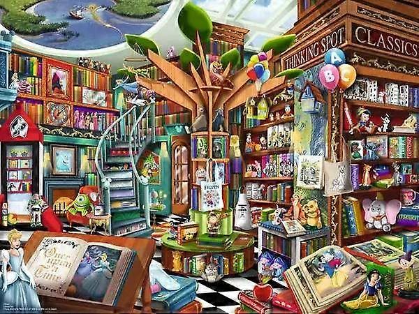 Magical Disney Bookshop is a premium quality 1500-piece cardboard jigsaw puzzle from Ravensburger. Step inside the most enchanting bookshop you've ever seen - where ever shelf tells a story, and every corner is filled with Disney magic. This beautifully illustrated 1500 piece jigsaw puzzle captures a magical bookstore filled with classic tales and beloved characters like Cinderella, Snow White, Dumbo, Aristocats. Jungle Book, Toy Story, Tinkerbell, Lilo & Stitch, Moana, Tiana, Pinocchio, 101 Dalmatians, The Lion King, Frozen, Ratatouille, Mickey Mouse, Minnie Mouse, Pluto and many more. Perfect for Disney fans and puzzle lovers alike, this high quality puzzle features intricate artwork, hidden details and plenty of charm. From fairytale scrolls to flowing lanterns and magical trinkets, every piece draws you deeper into a world where imagination comes to life. Piece together the magic - one story, one shelf, one beloved character at a time.Includes full colour in-box leaflet with extra puzzle picture for easy reference and artist information. The finished puzzle measures 80 x 60cm when complete. Suitable for ages 12 years and up. Made from strong premium grade cardboard, with linen finish print to minimise glare on puzzle image.Ravensburger’s puzzles are made from at least 70% recycled cardboard and are now packaged in smaller boxes. There is 89% less plastic waste as the puzzle boxes are no longer shrink wrapped in plastic.Ravensburger has over 50 years’ worth of experience in the manufacture of puzzles. With a wide selection of puzzles, Ravensburger pride themselves on having the highest quality. Individual puzzle pieces are stamped with such precision that a quiet "click" can be heard when one piece is inserted in the other, their unique Softclick Technology.’ The jigsaw puzzles are made using unique punching templates and punching tools, which are hand-crafted with watchmaker precision to ensure the greatest possible accuracy and variety of the puzzle pieces.