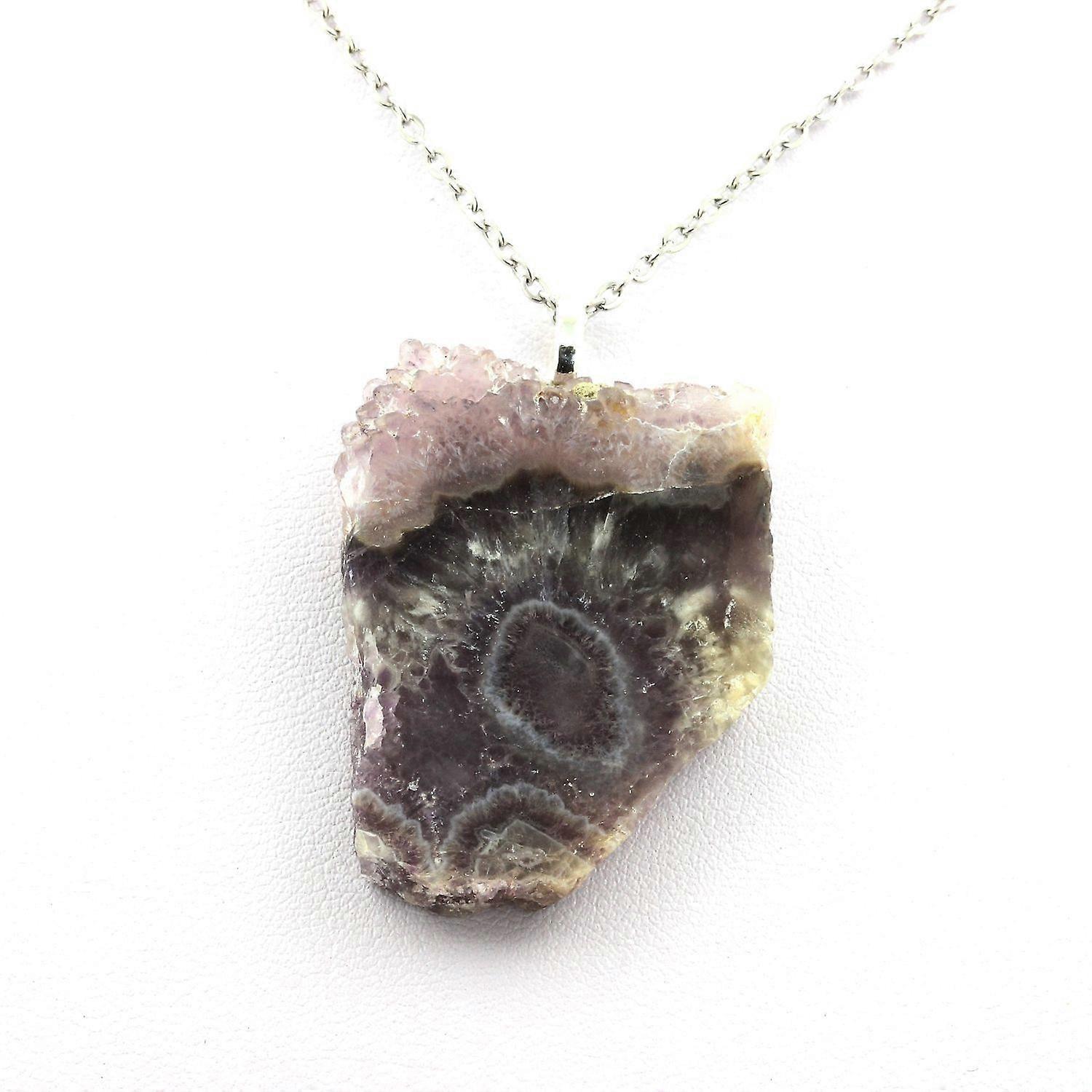 Raw Agate + Amethyst necklace + stainless steel chain, length 40, 45, 50, 55, 60, 70, 80, 90 cm of your choice. Agate from Châtelperron, Vichy, Allier, Auvergne-Rhône-Alpes, France. Made in France in the A Bijoux workshop. Average weight (Carats): 76.13 carats. Dimensions (mm): 50 x 30 x 5 mm. Mixed jewelry for women, men and children. Delivered in a gift box. Ref. : SKU051060. Jewelry worn around the neck, often made of precious metals or adorned with precious and semi-precious stones.