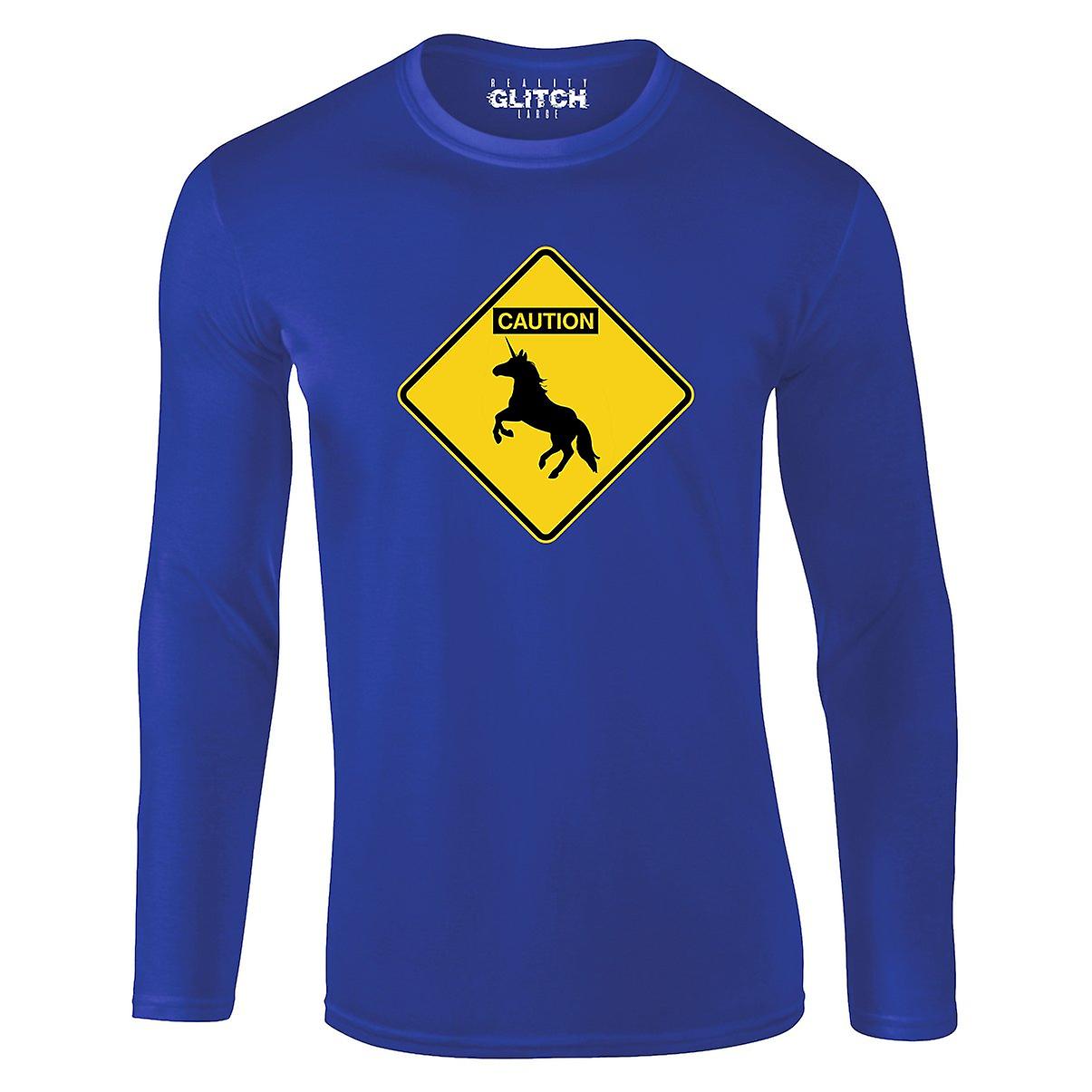 Reality Glitch Caution Unicorns Mens T-shirt - Long Sleeve