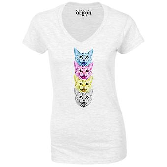Reality Glitch Cmyk Cat Womens T-shirt - V-neck