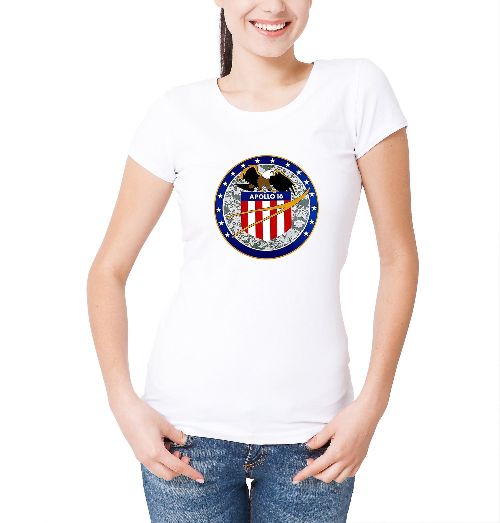 Reality Glitch Nasa Apollo 16 Mission Crew Badge Logo Womens T-shirt