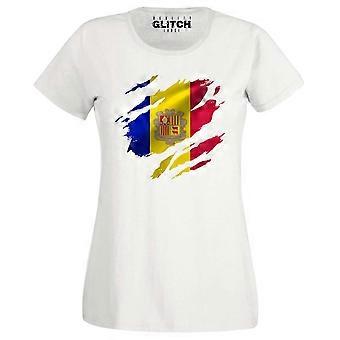 Reality Glitch Torn Andorra Flag Womens T-shirt