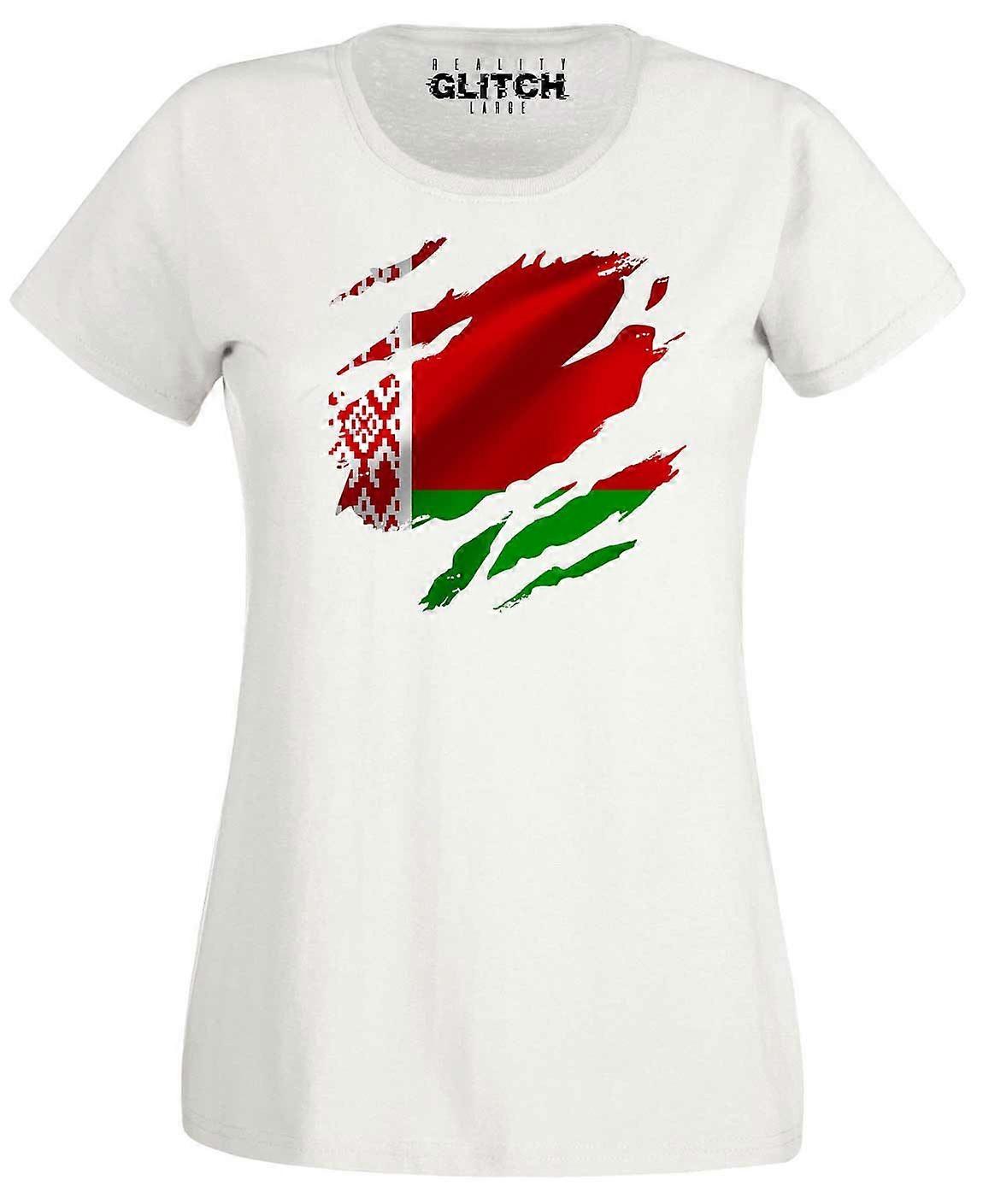 Reality Glitch Torn Belarus Flag Womens T-shirt