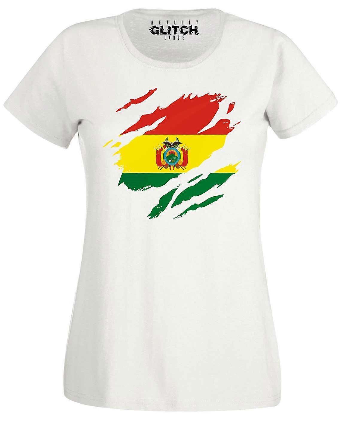 Reality Glitch Torn Bolivia Flag Womens T-shirt