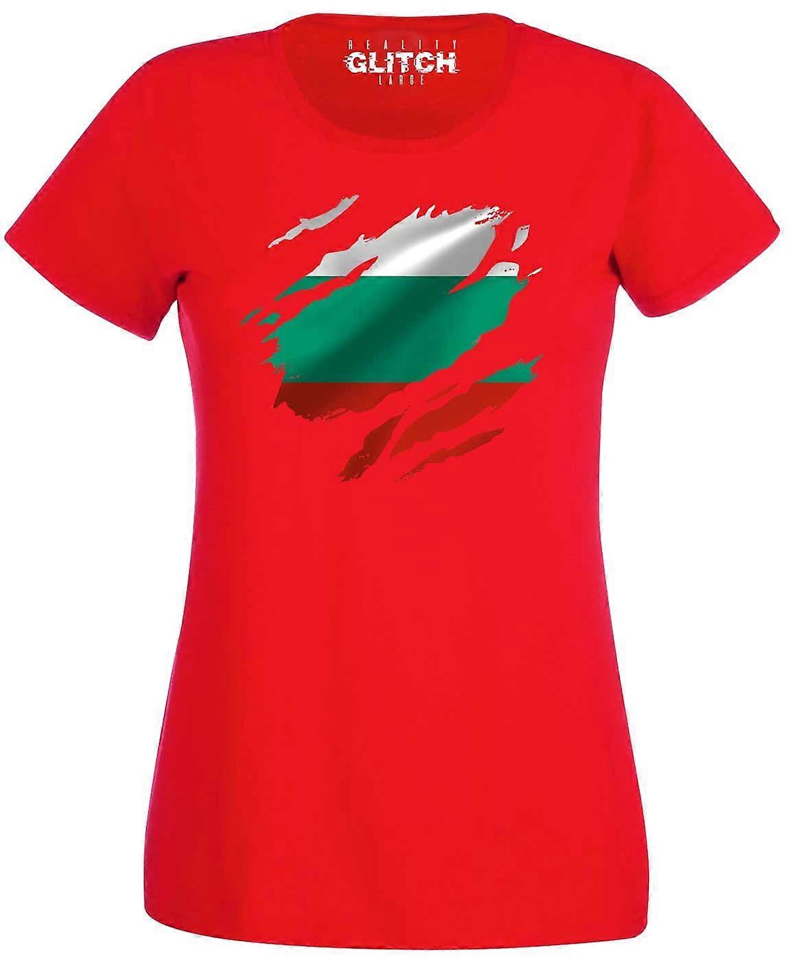 Reality Glitch Torn Bulgaria Flag Womens T-shirt