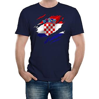 Reality Glitch Torn Croatia Flag Mens T-shirt