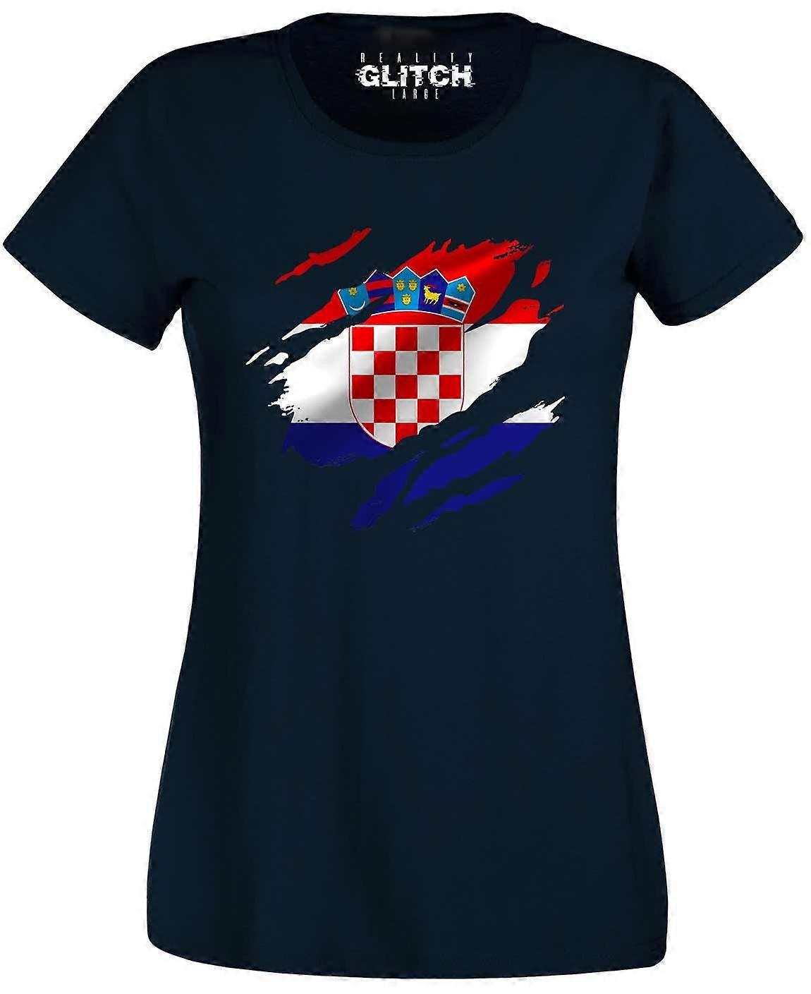Reality Glitch Torn Croatia Flag Womens T-shirt