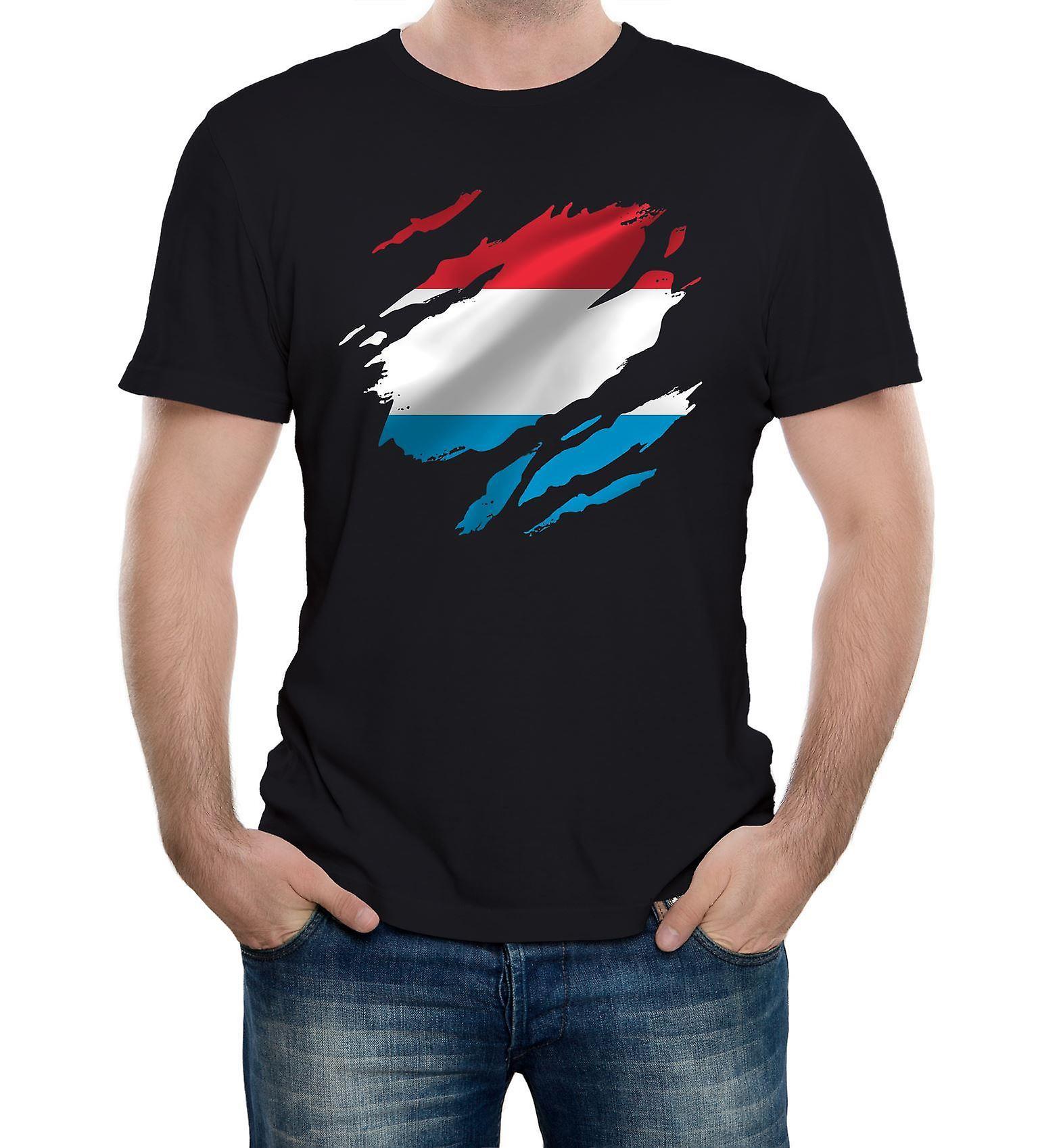 Reality Glitch Torn Luxembourg Flag Mens T-shirt