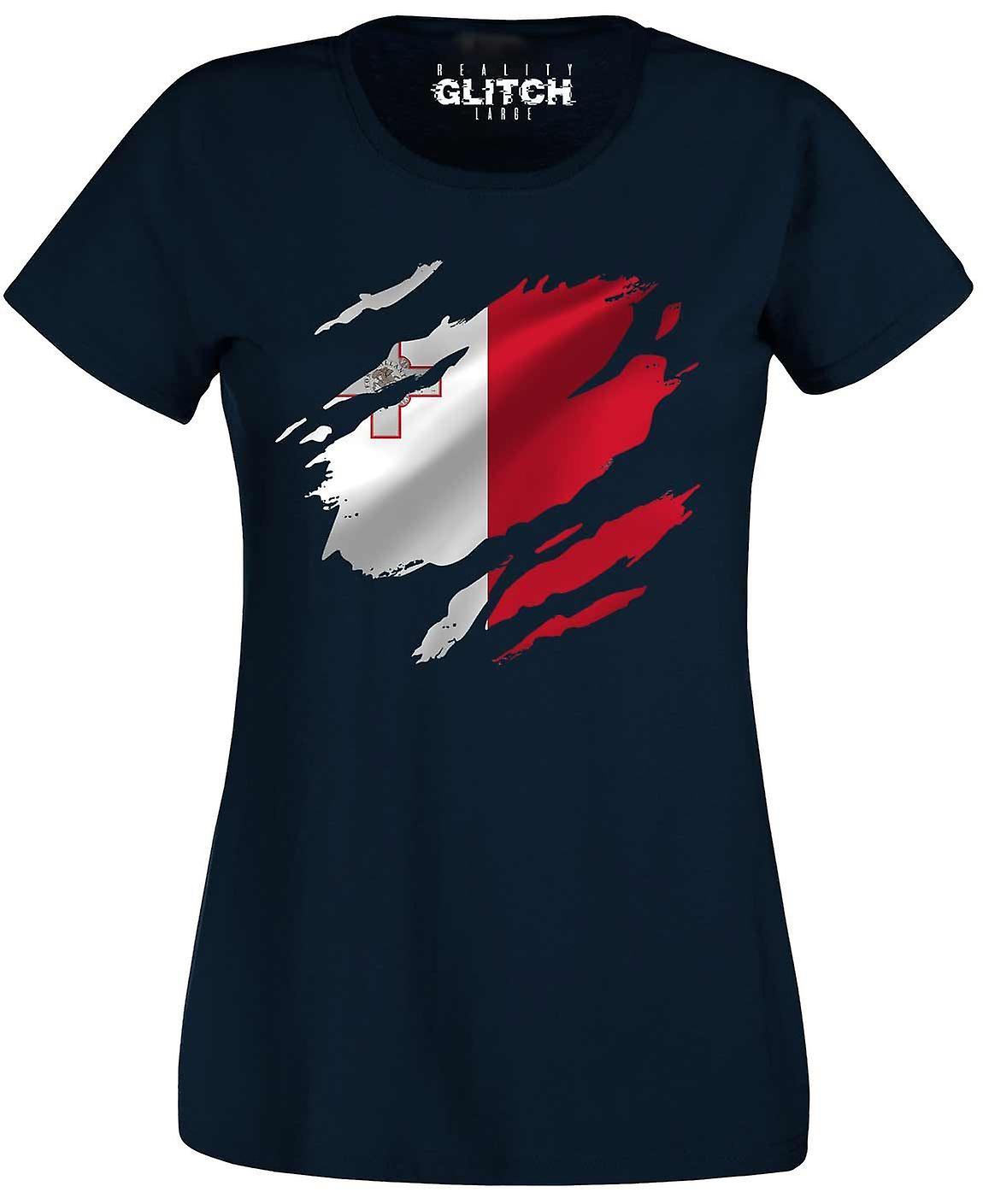 Reality Glitch Torn Malta Flag Womens T-shirt