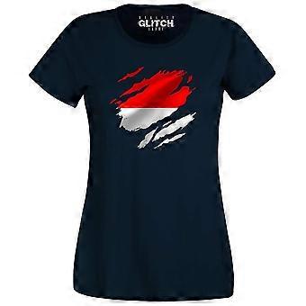 Reality Glitch Torn Monaco Flag Womens T-shirt