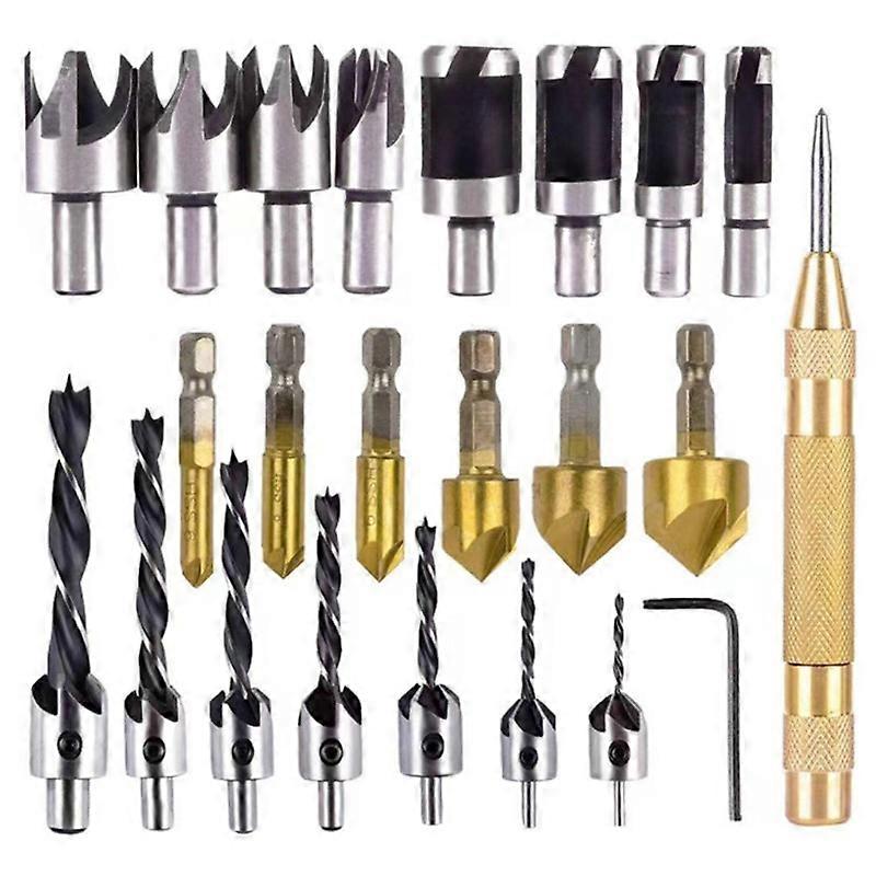 Reaming Drill Bit Parts Set 1/4'' Hex Chuck HSS 5 Countersink Countersink for 90 Degree Holes Wood Chamfer Cutter Woodworking Tools