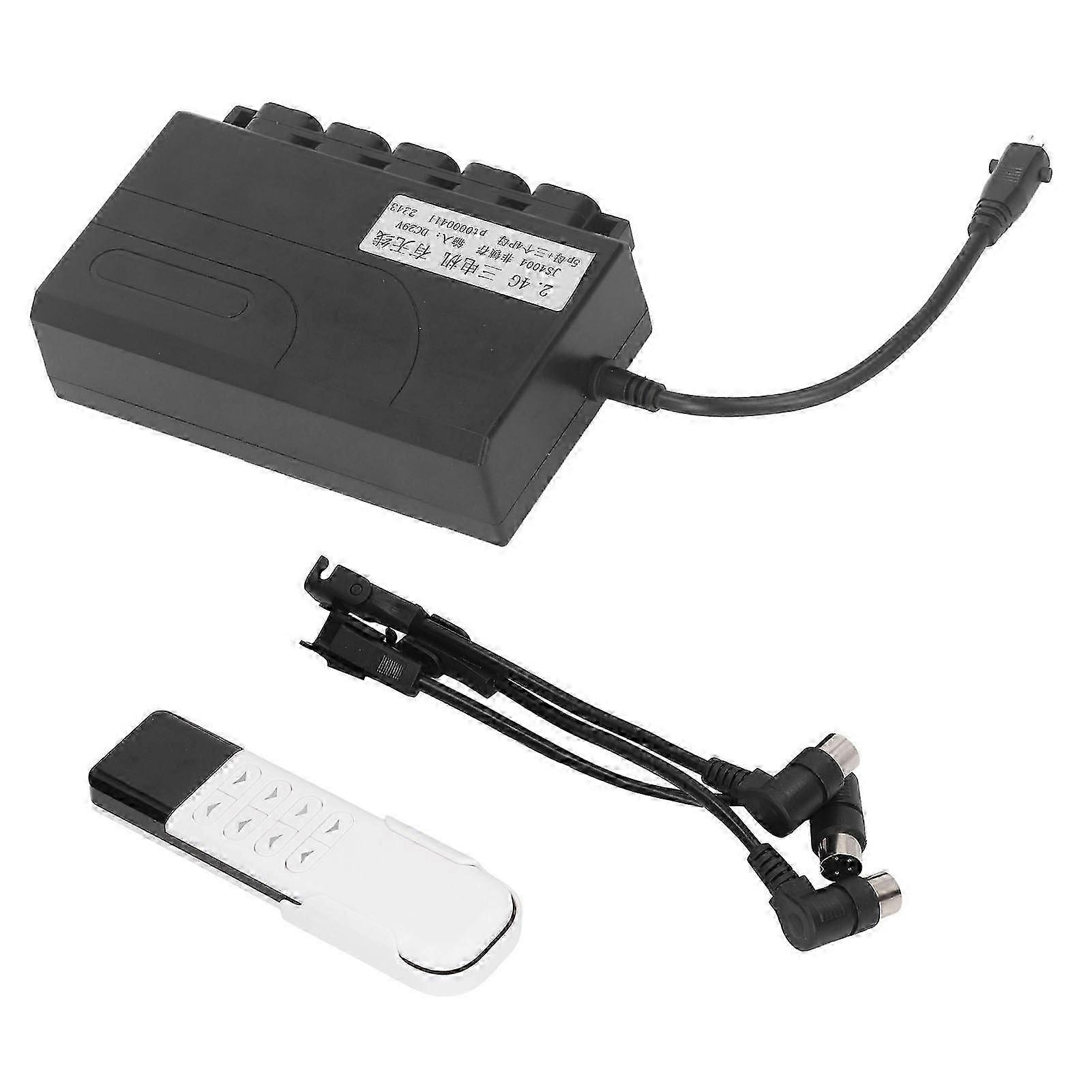 Features:1SAFE TO USE: Install a wireless remote control device for your electric recliner no more wires clean and tidy no worry about tripping over your kids and pets. 21 FOR 3 MOTOR: This recliner wireless controller with 1 control 3 push levers can control 4 electric push levers at the same time or single control. 3WIDELY APPLICABLE: Reclining furniture receiving controller is placed on TV sofa window etc and their lifting is controlled by remote control. 4MULTI PROTECTION: Electric recliner wireless controller supports over current protection short circuit protection overheating protection safe to use. 5CONVENIENT: Reclining furniture wireless controller is designed to be compact and easy to install which brings great convenience to life and adds much fun.Specification:Item Type: Recliner Wireless ControllerMaterial: ABSMotor Wireless Control (All in One)RF Frequency: 2.4GHzWireless Distance: Approx. 10-30m / 32.8-98.4ftPair Code Way: Power On CodePairingRemote Control Power: 2 x AAA Batteries (Not Included)Input Voltage: DC29VOutput Power: DC 29V 2A (Instantly Up to 7.5A)Standby Power Consumption: <1W (With Wireless Receiver Board)Protection: Over Current Protection Short Circuit Protection Overheating ProtectionAdapter Interface: 1 5P Female with 3 4P FemaleGross Weight: Approx. 430g/15.2ozPackage List:1 xReclinerWirelessController1 x Remote Control (Battery Not Included)3 x Adapter Wire