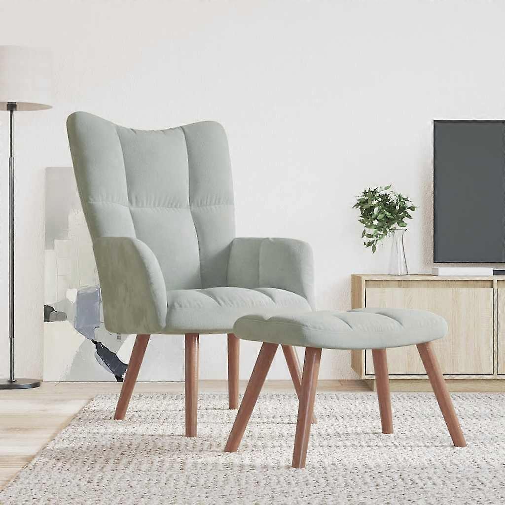 Relaxsessel mit Hocker Hellgrau Samt