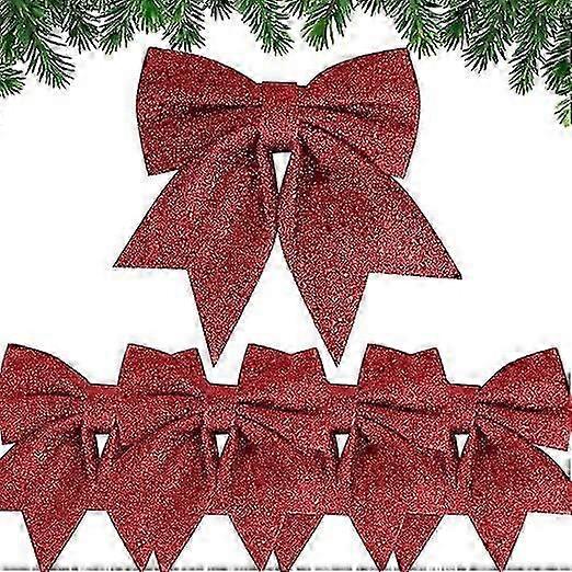 Red 5PCS Christmas Ribbon Bow 24cm Large Size Christmas Bows Ribbon Bow Ties Ornaments Christmas Decoration for Christmas Trees Gift Wrapping Christma