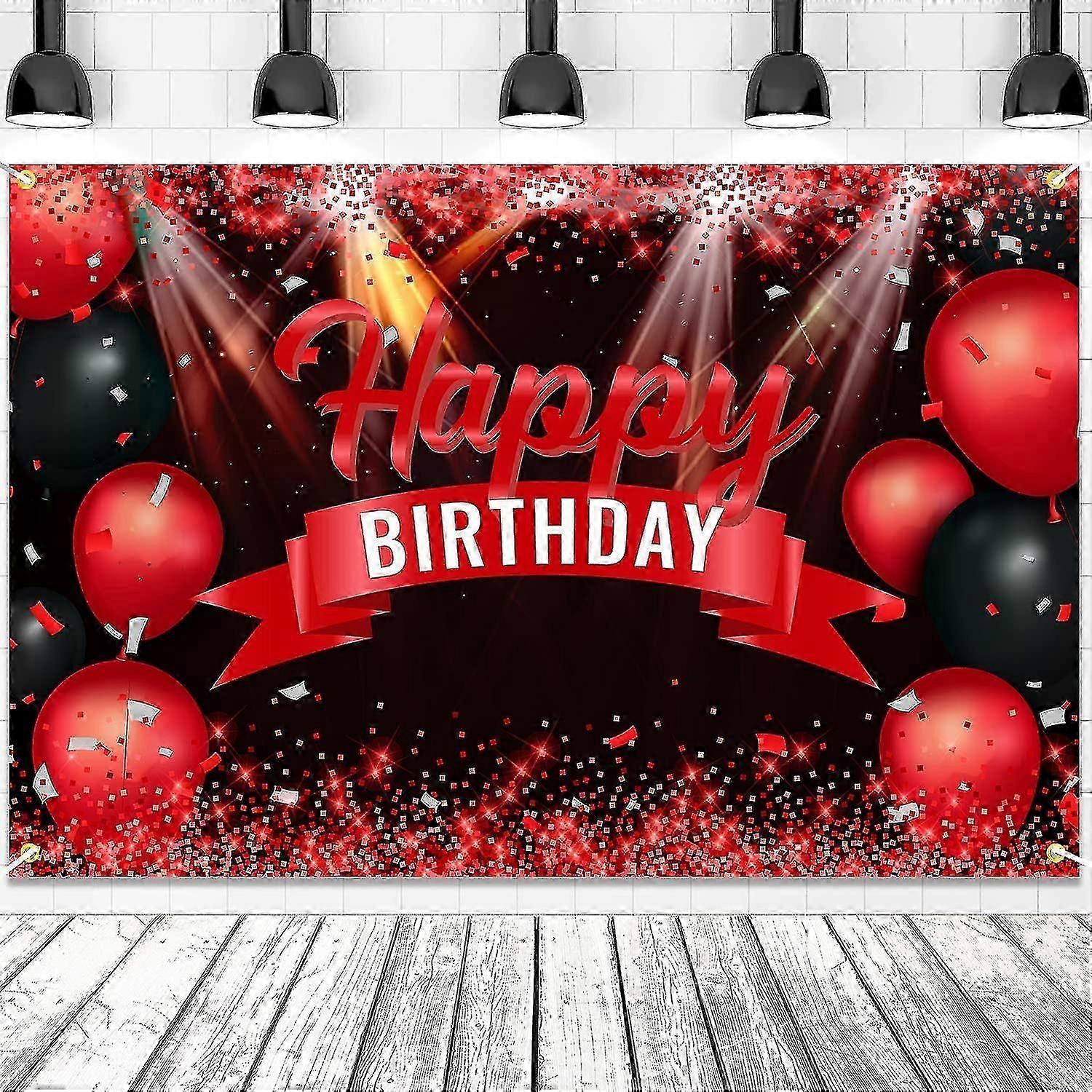 Red and Black Happy Birthday Banner Backdrop - Bday Decorations for Girls, Boys, Women, Men - Anniversary Photography Party Supplies Glitter