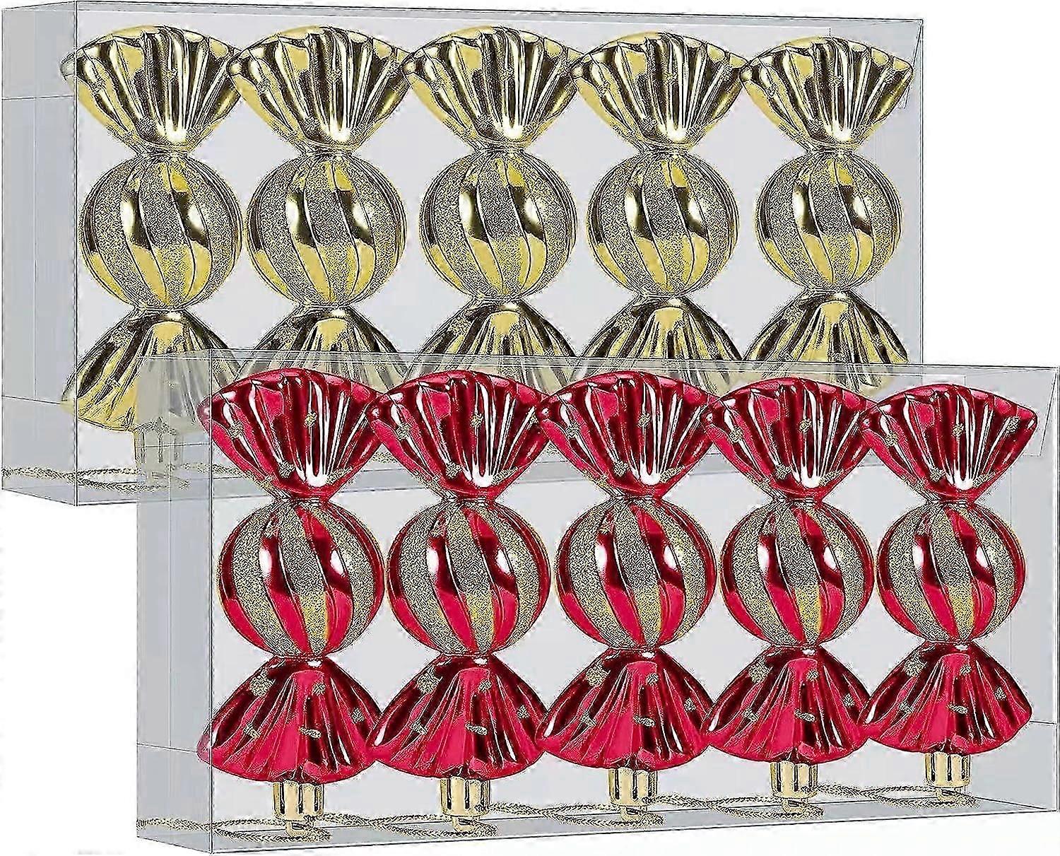 Red And Gold Christmas Tree Decorations, 10Pcs Christmas Baubles Plastic Candy Ornaments, Big Christmas Decorations Hanging 11Cm, Candy Cane Christmas