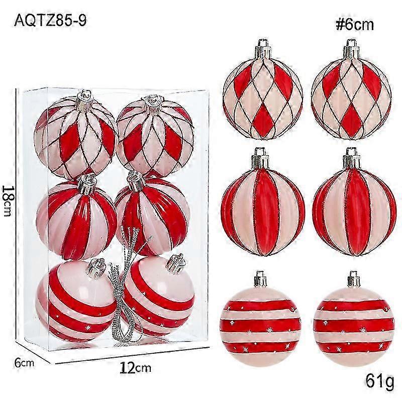 Red and white plastic Christmas ball set jelly balls 6 pack Christmas tree pendant hanging ball decoration spot 6CM Christmas ball B (6 pack)
