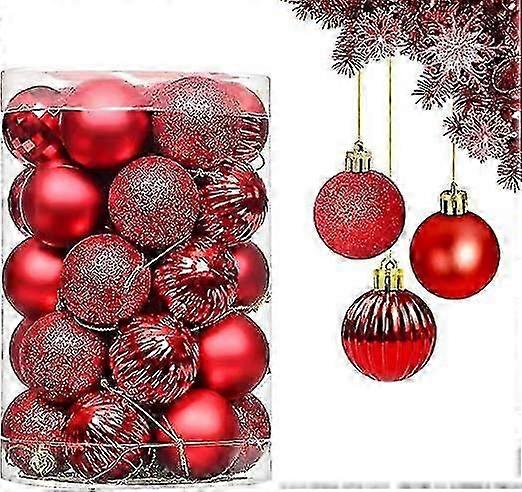 Red Christmas Bauble, 34 Pcs 4 Cm Christmas Ball Set For Tree Decorations, Shatterproof Hanging Pendants For Decor