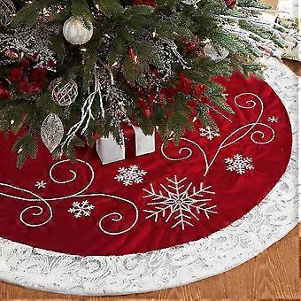 Red Christmas Tree Skirt 48 Inches Snow Sequin Embroidery with White Trim Border Decor for Xmas Holiday Party Ornaments