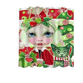 Red Green Christmas Cindy Girl and Kitty Cat Shower Curtain