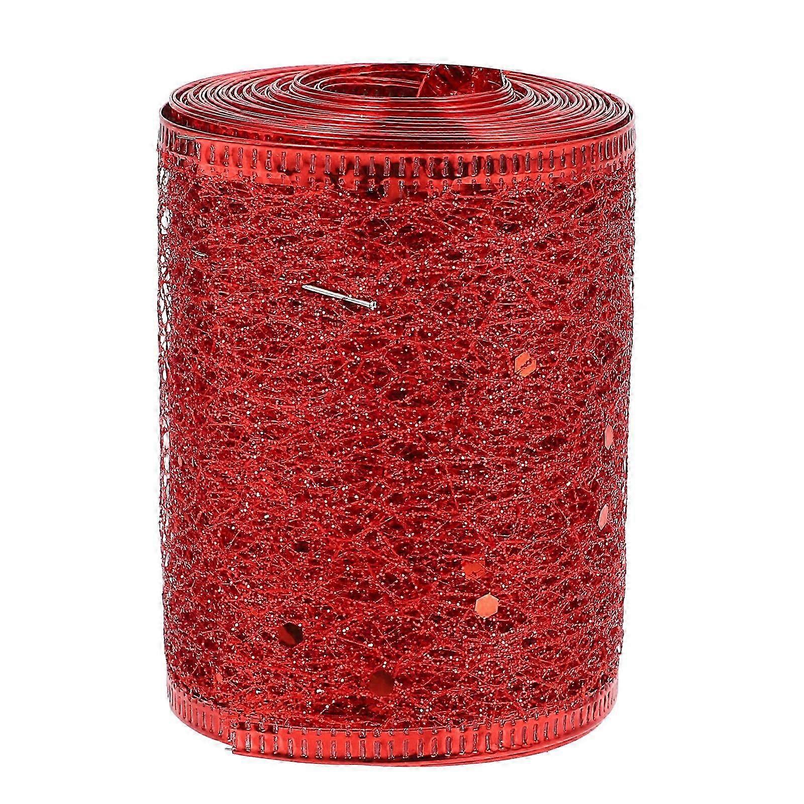 Red Hollow Glitter Mesh Ribbon for Holiday Crafting, DIY Festive Ornaments, Wrapping & Christmas Bow Making High Density Decorative Ribbon