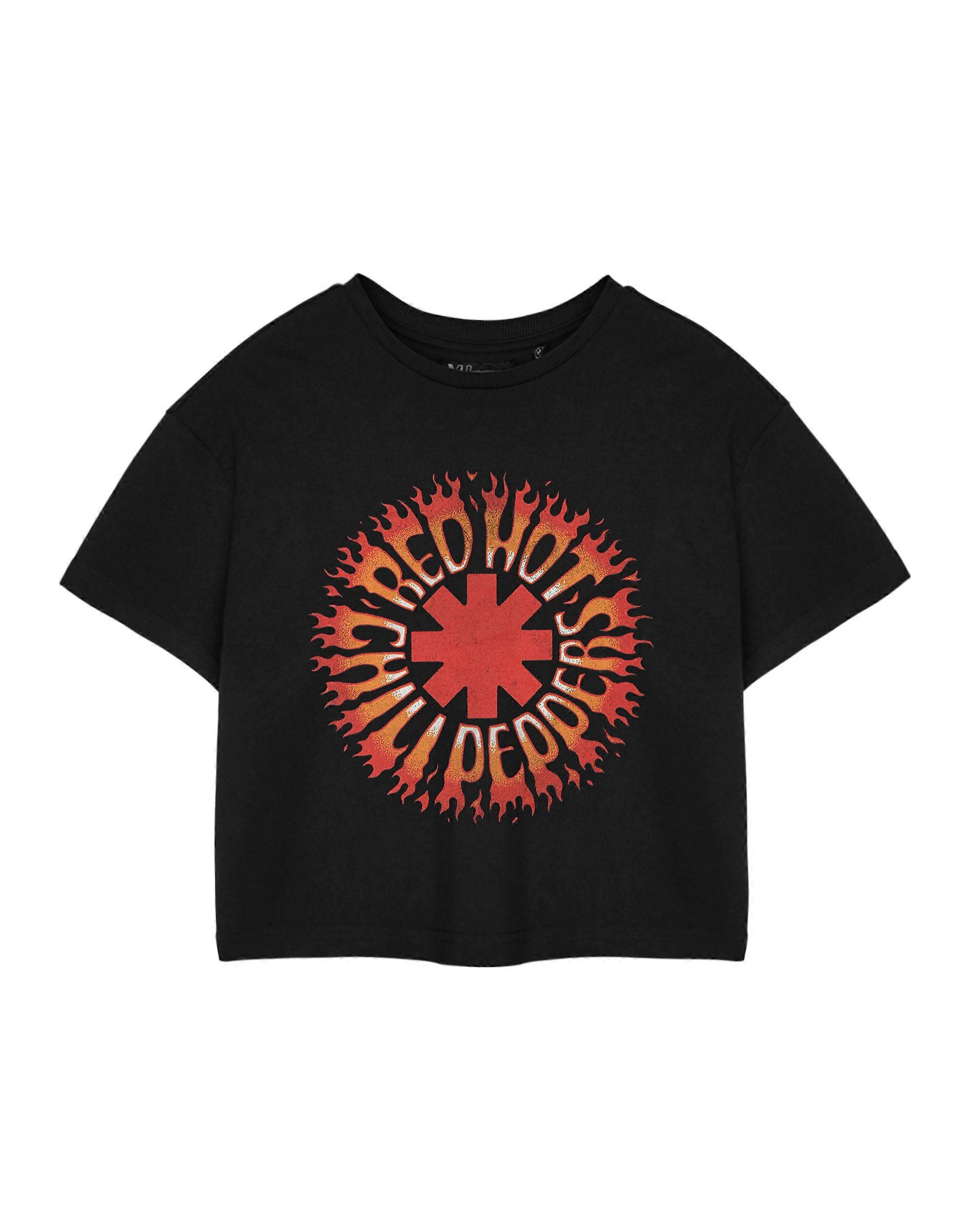 Red Hot Chili Peppers Womens Cropped Short Sleeved T-Shirt Black Flame