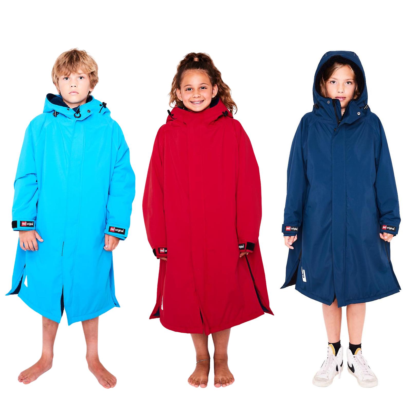Red Kids Dry Pro Hooded Surf Surfing Swim Fur Lining Changing Robe