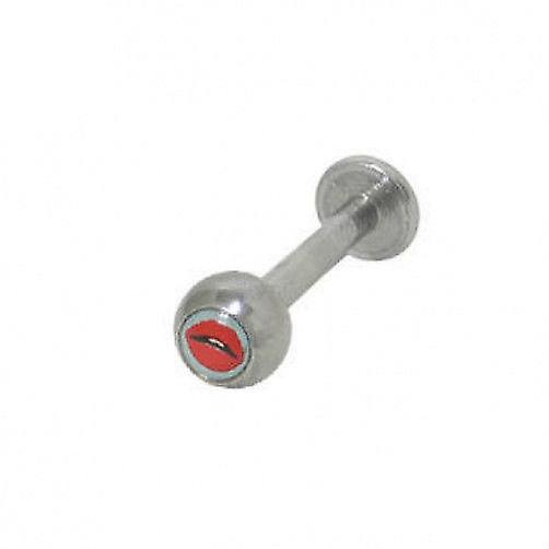 Red Lips Logo Labret Monroe Lip Jewelry Surgical Steel This is an exciting labret monroe lip jewelry made from 316L high-grade surgical steel with red lips logo.The logo bead size is 5mm.The comfortable flat end measures 4mm.The size is available in 14 gauge and length of 8mm-5/16 of an inch.The entire piece is nickel free.