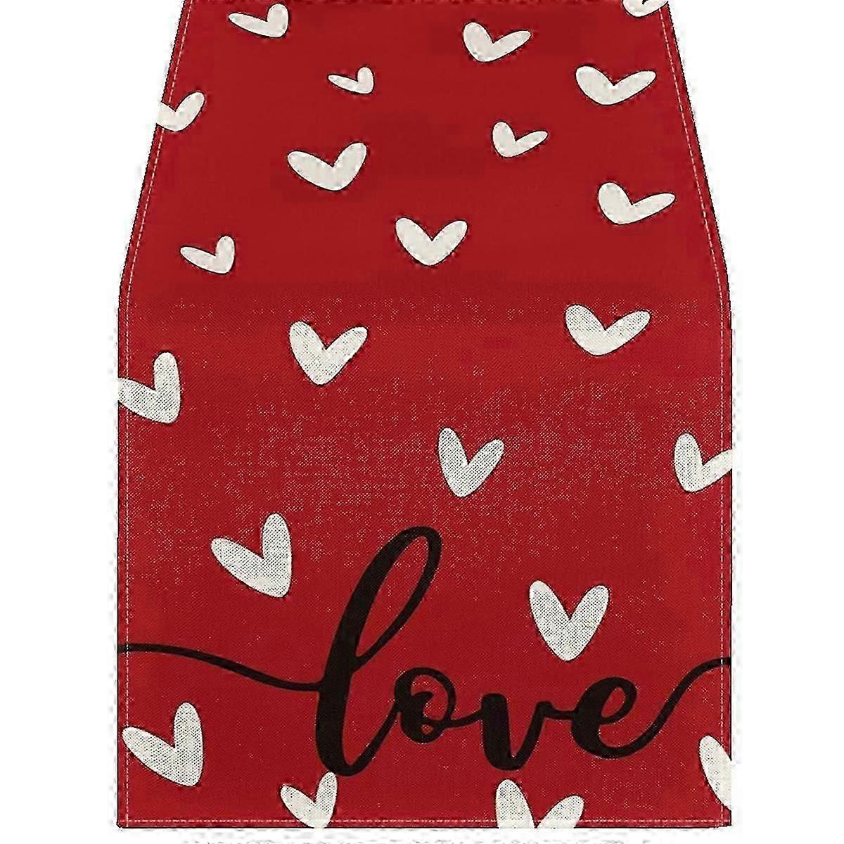 Red Love Valentine's Day Table Runner, Seasonal Anniversary Kitchen Dining Table Decoration for Indoor Home Party
