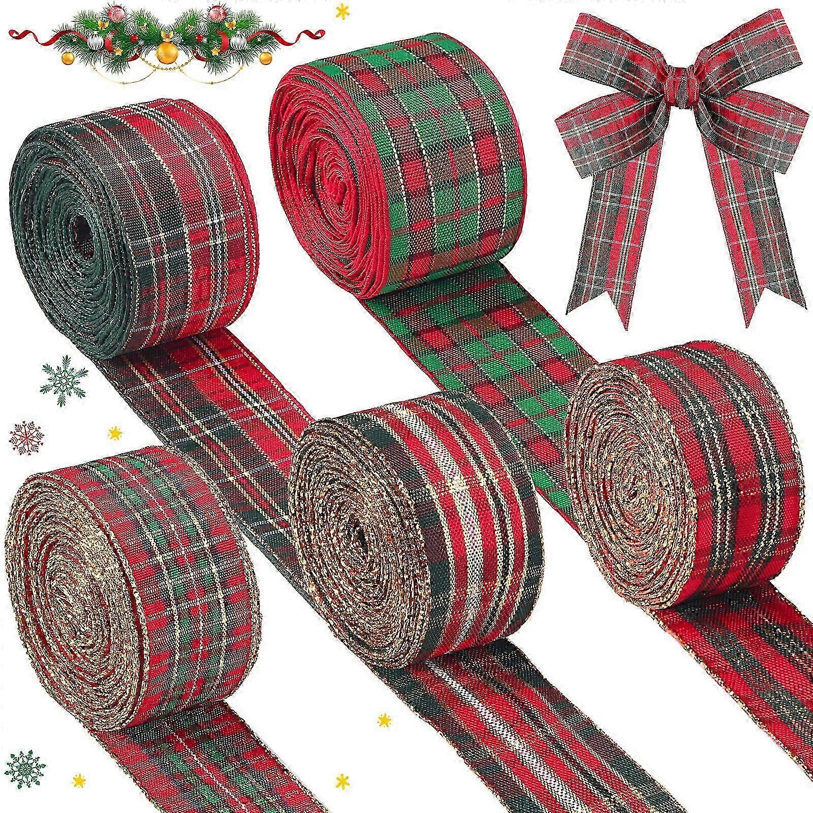 Red Plaid Christmas Ribbon Rolls, Gingham Ribbon, Wired Edge Wrapping Ribbon, Plaid Ribbon, 6 Yards Per Roll