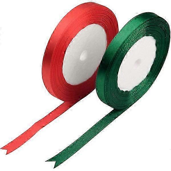 Red Ribbon Green Ribbon 10 mm Christmas Satin Ribbon Set Ribbon for Crafts Gift Wrapping 22 m x 2 Rolls